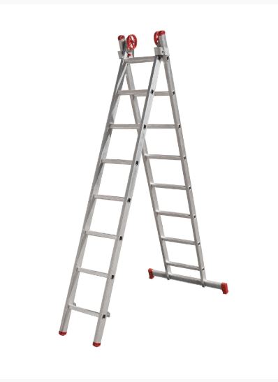 Escada Botafogo de Abrir e Estender em Alumínio 8 degraus (em cada um dos lados) - Linha Profissional.